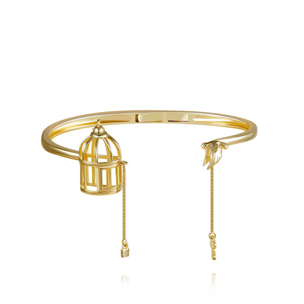 A symbol of freedom, now wrapped around your wrist. The love bird freedom Bangle continues the iconic birdcage motif, featuring a delicate open cage and a soaring bird - respresenting courage, dreams, and the beauty of breaking free.