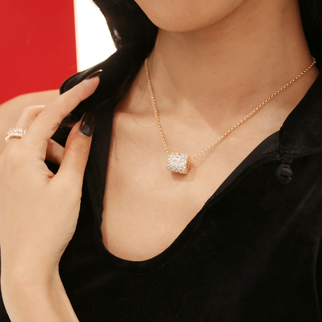 Een nieuw modern ontwerp van de klassieke hanger met eeuwigheidsring met hints van Italiaanse inspiratie. Het is niet gemakkelijk om deze kroonvormige ketting te vergeten. Net als de drager mag ook uw nalatenschap niet snel vergeten worden.