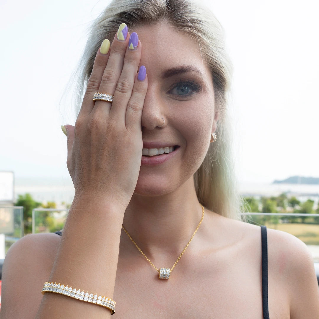 MATERIALEN: Goud Vermeil - (basis - 925 zilver, plaat - 18k geel goud), 5A zirconia diamanten