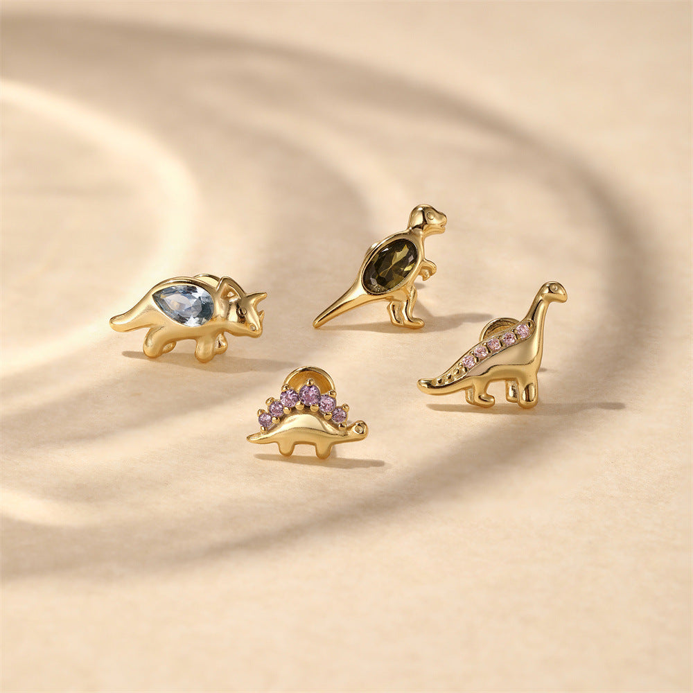Gold Plated Dinosaur Flat Back Earrings S925 Sterling Silver Comfort Fit Cartilage Jewelry